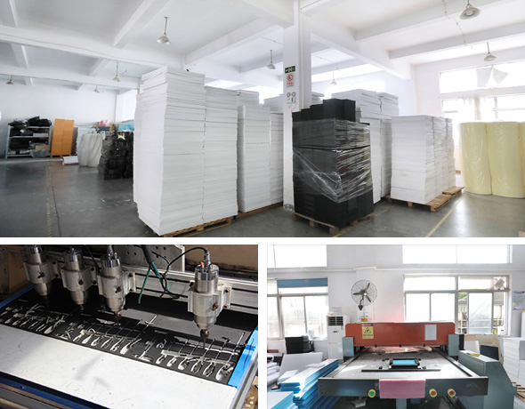 擁有最新自動化精準分切機7臺,自動150噸雙邊進料裁斷機8臺,自動雙邊粘合機6臺,雕刻機8臺。其他各種生產設備齊全,精準度高,質量保障。